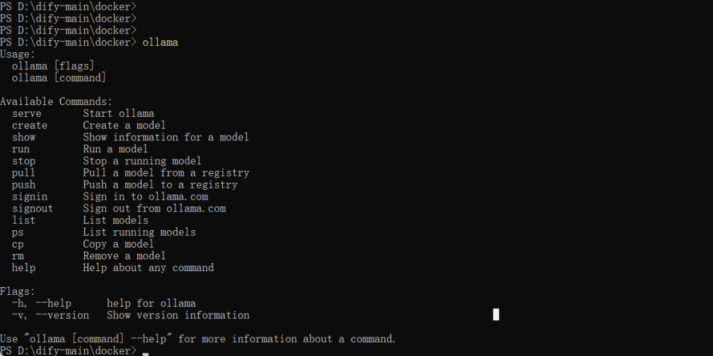 // ollama : 无法将“ollama”项识别为 cmdlet、函数、脚本文件或可运行程序的名称。请检查名称的拼写,如果包括路径,请确保路径正确,然后 再试一次。 所在位置 行:1 字符: 1 + ollama + ~~~~~~ + CategoryInfo : ObjectNotFound: (ollama:String) [], CommandNotFoundException + FullyQualifiedErrorId : CommandNotFoun